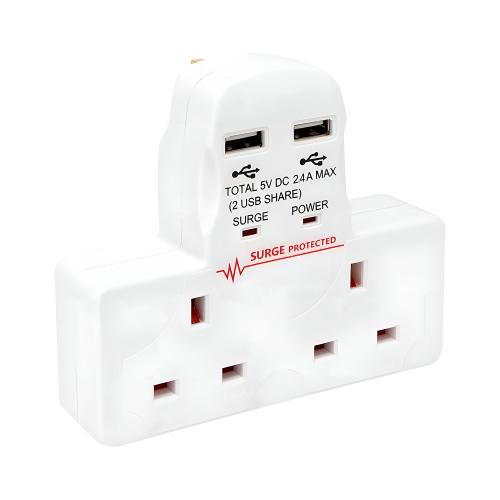 2 Way Plug Adaptor with 2xUSB-A Ports